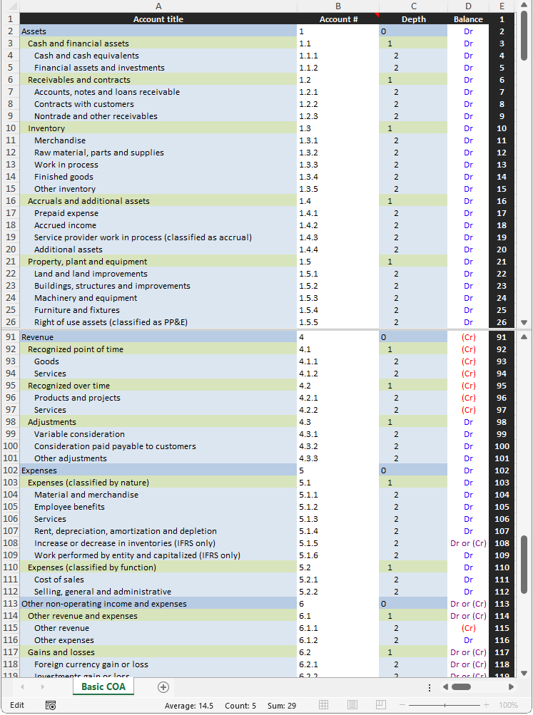 Download the basic COA in .xlsx.