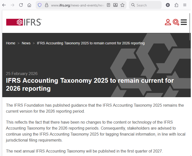 Not updated for 2026 reflecting the IASB decision to not update the 2025 XBRL taxonomy.